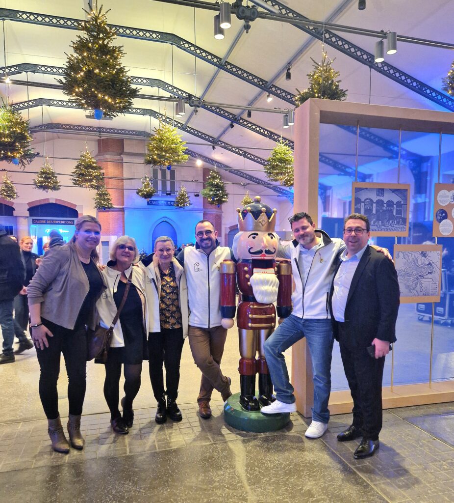 En décembre 2024, Armelle, Sylvie, Emmanuelle, Thomas et Rodolphe ont vendu différents objets VRANKEN au court du traditionnel Bal de l’Avent au domaine Vranken-Pommery à Reims. Cette soirée met à l’honneur les collaborateurs ainsi que les vignerons partenaires.